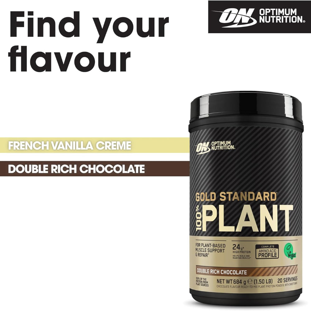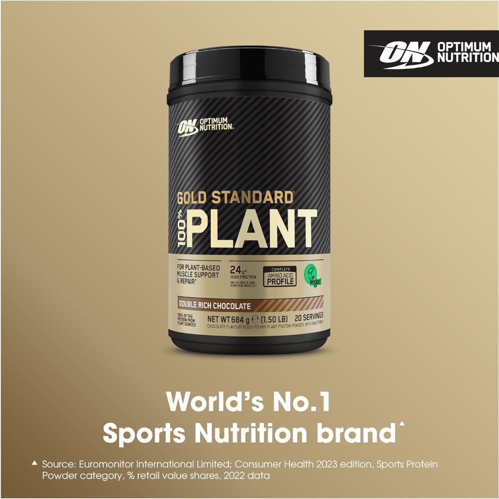 GOLD STANDARD 100% PLANT from OPTIMUM NUTRITION® is made from 100% vegan ingredients, contains a complete profile of amino acids and has no artificial colours or flavours. GOLD STANDARD 100% PLANT is now Vegan Society approved and Informed Choice certified. After training, your body uses protein to help repair and maintain* muscle fibres. Each great tasting serving contains 24 g of plant protein to support muscle growth & repair*, 4 g of naturally occurring BCAAs and 4 g glutamine & glutamic acid. GOLD STANDARD 100% PLANT is best enjoyed first thing in the morning and / or during the 30 minutes just before or immediately after training.